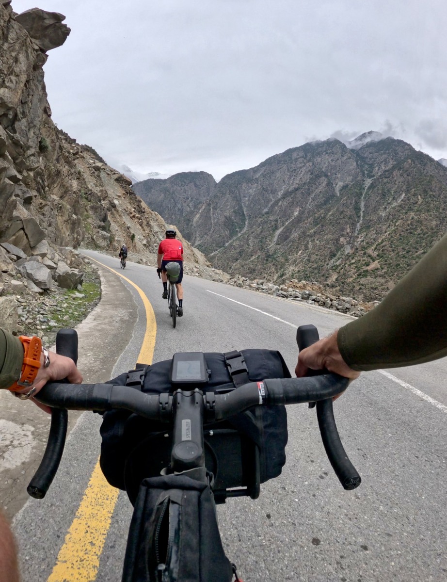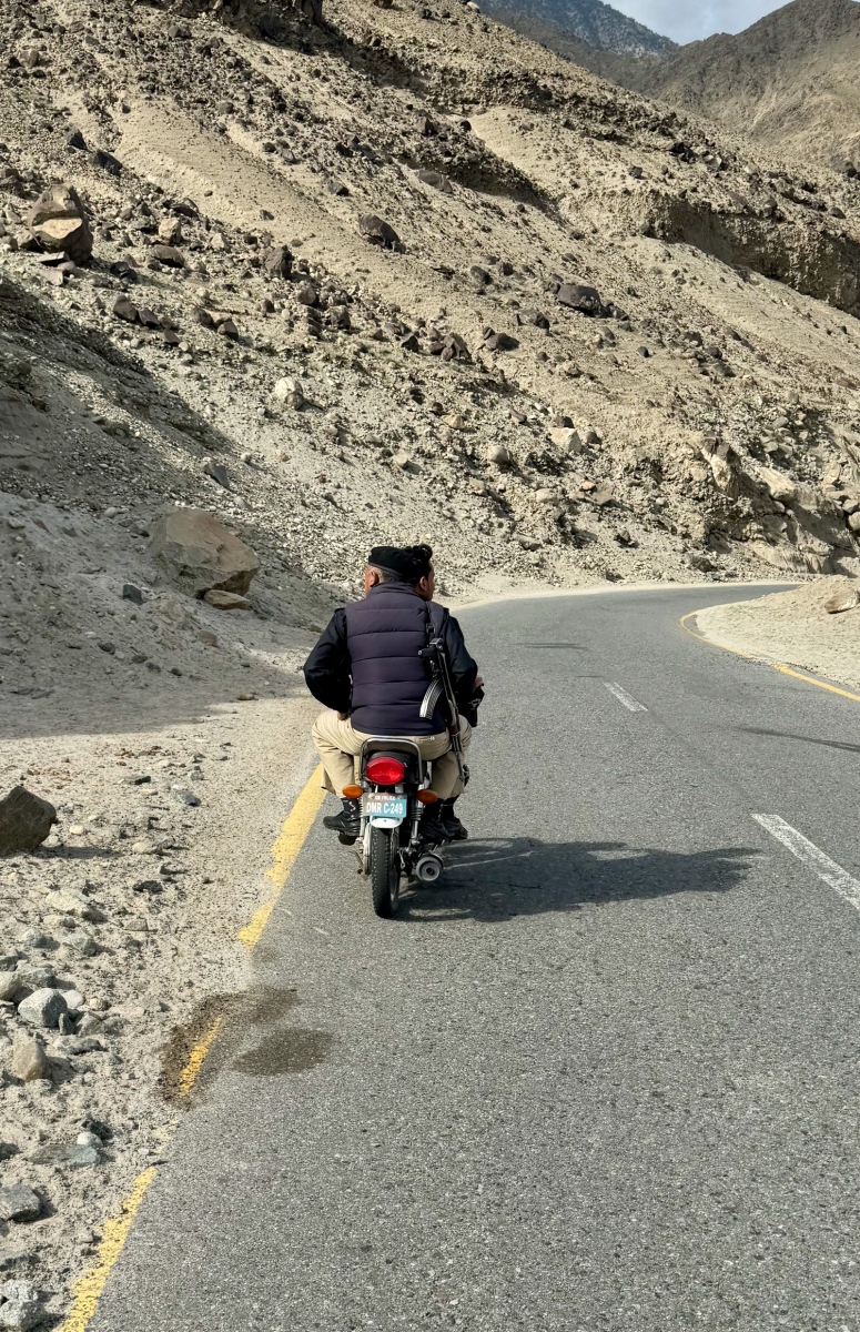 We left the security of Hunza and cycled south getting our first security detail. For the next few days, we basically had armed police following or leading us. Very hospitable of them but not really needed (I guess until too late!). Good riding and good to be dropping in altitude. We would have gone over Babusar but the mountain road was not open for another month so we had to push on through the so-called “dangerous area”.