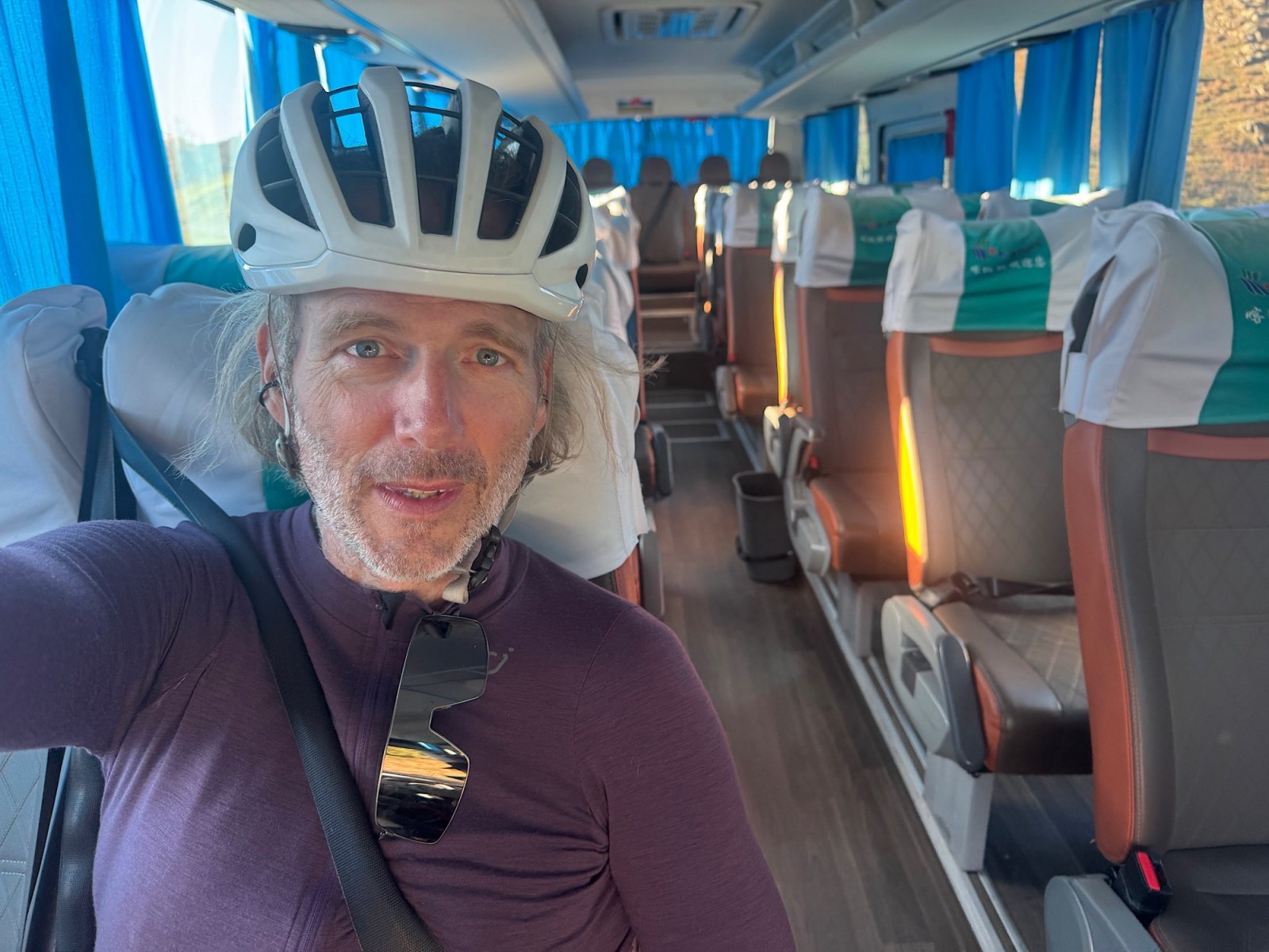 First section of G219 not finished but great tarmac. Recommended ride. It gets better and better. Bus last 5km so total should be around 150km. Epic Day!